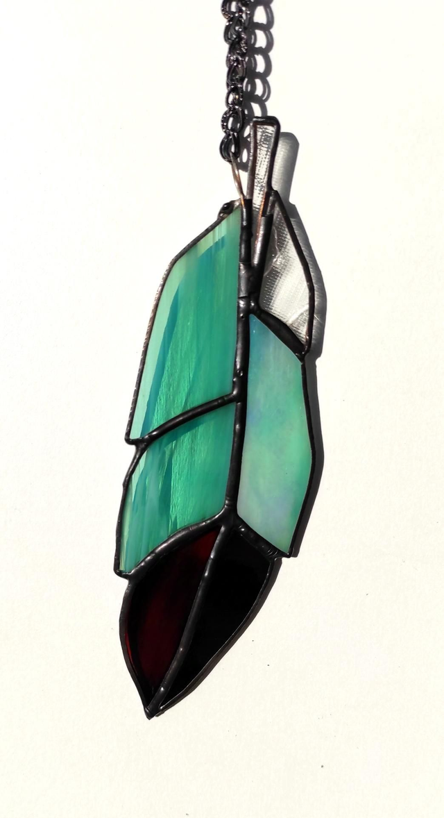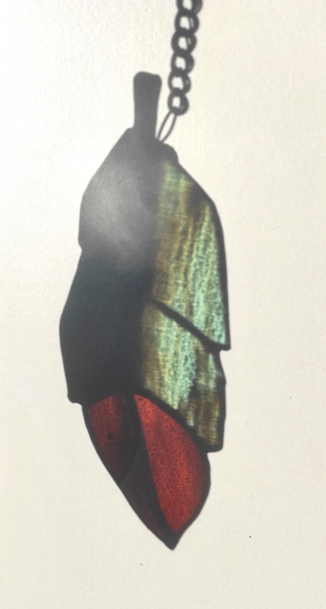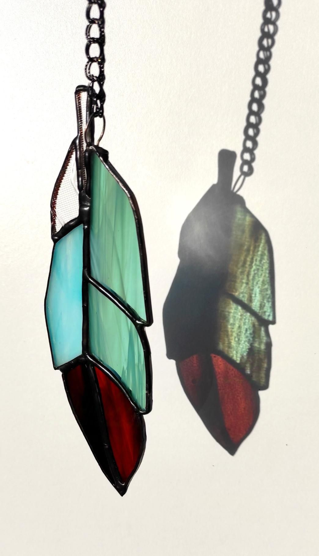 Plume terrienne est un vitrail original réalisé artisanalement dans mon atelier Auvergnat.